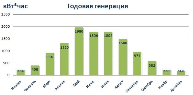 При направленні на південну сторону річна вироблення електростанції потужністю 10 кВт в середньому складе 12 МВт * год (12 000 кВт год) електроенергії, тобто коефіцієнт буде дорівнювати 1,2.