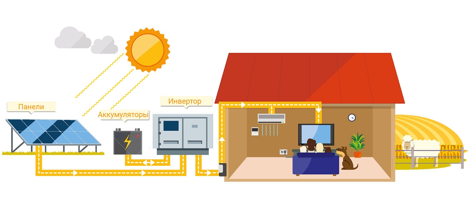 Отже, основна комплектація автономної СЕС не надто відрізняється від мережевої. Основою станції є панелі, а «серцем» можна вважати інвертор. Іноді замість нього використовується спеціальний контролер, за умови, якщо станція має невисоку потужність. Однак основною відмінністю автономної СЕС від мережевої є наявність акумуляторів, які здійснюють накопичення електроенергії на противагу її скиданню в мережу.